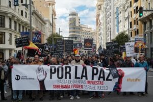 Alrededor de 2.000 personas claman por la paz y la independencia de España en las guerras de Ucrania y Oriente Medio